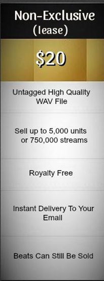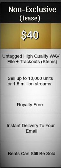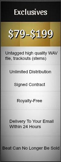 There are two differences between leasing beats and buying exclusives. The exclusive beats for sale can be sold only one time, to only one person and come tracked out by default (each sound of the beat comes with individual file + the mixed version) for more precise mixing of the record.